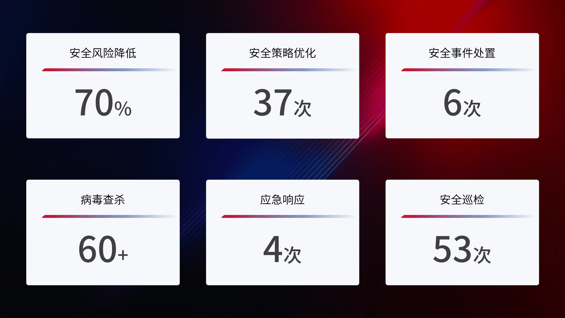 提供全面的安全事件报告体系,,包括处置报告、、、周报、、、、季度和年度总结,,结合持续监控,,帮助客户深入了解网络安全状况。。