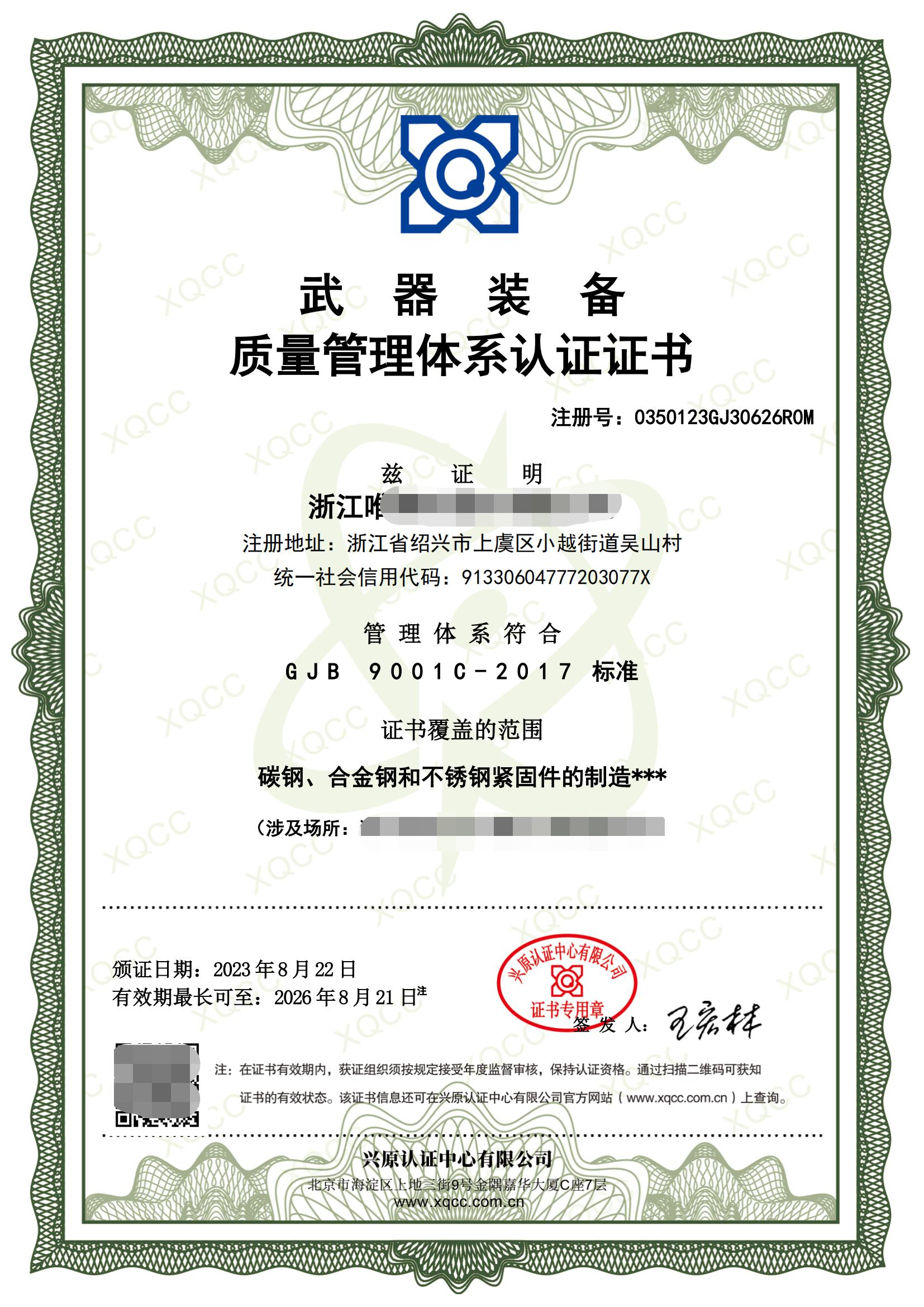 国军标质量管理体系认证(GJB9001C-2017)为中华人民共和国国家军用标准 ,也叫武器装备质量管理体系认证 ,依据《武器装备质量管理条例》相关规定 ,武器装备以及用于武器装备的计算机软件 、专用元器件、配套产品、原材料都应进行质量管理,武器装备论证、研制、生产、试验和维修单位应当建立健全质量管理体系,对其承担的武器装备论证 、研制 、生产、试验和维修任务实行有效的质量管理,确保武器装备质量符合要求。