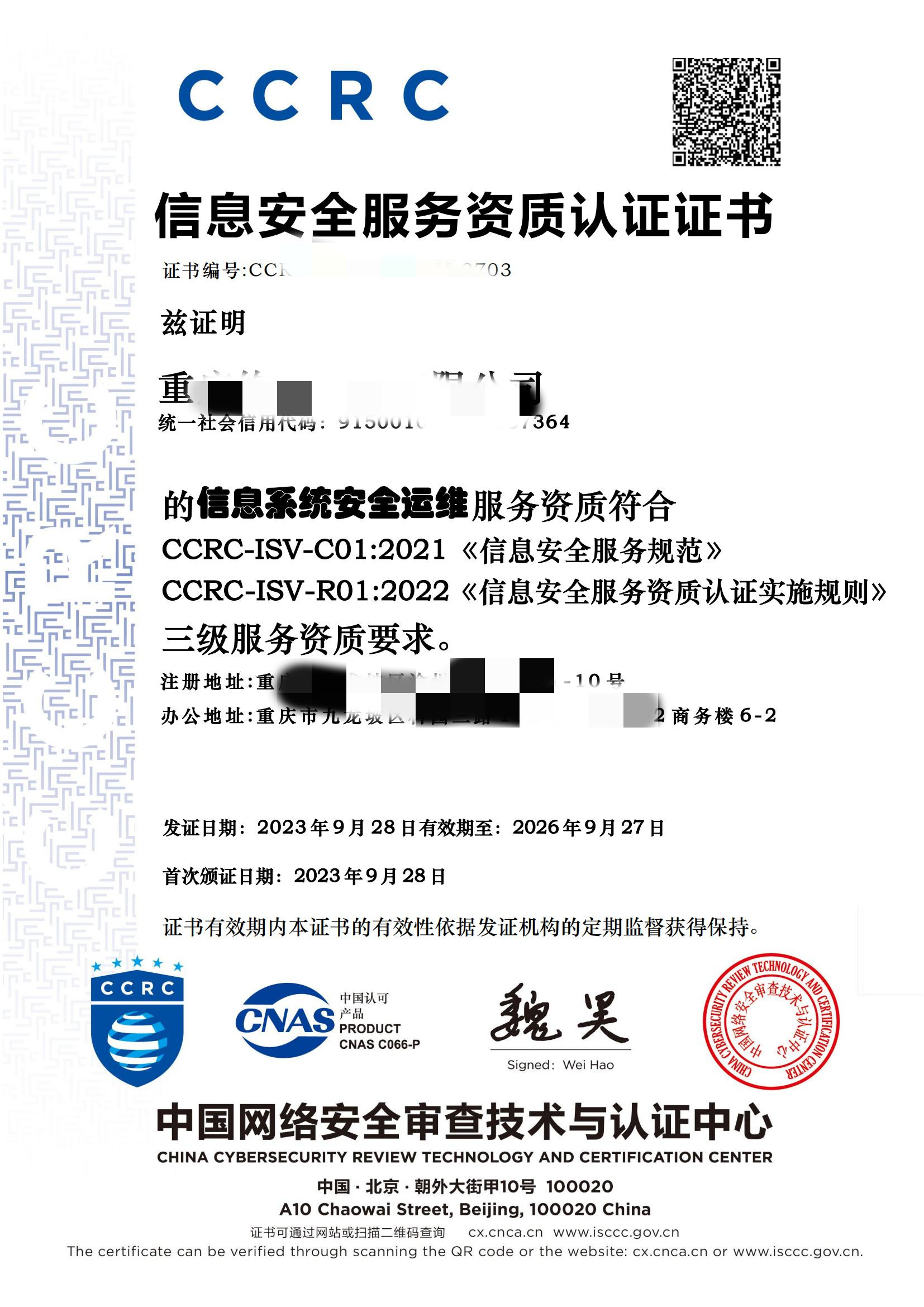CCRC信息安全服务资质 |