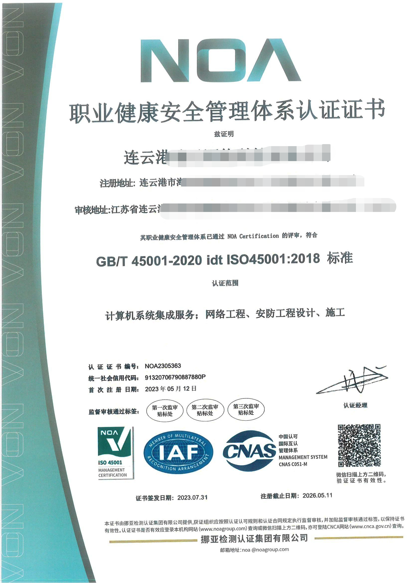 ISO45001职业健康安全管理体系认证, 是一国际性安全及卫生管理系统验证标准 。是20世纪80年代后期国际上兴起的现代安全管理模式 。它是一套系统化 、程序化和具有高度自我约束、自我完善的科学管理体系。其核心是要求企业采用现代化的管理模式、使包括安全生产管理在内的所有生产经营活动科学 、规范和有效,建立安全健康风险,从而预防事故发生和控制职业危害。这与我国"安全第一,预防为主"的基本工作方针相一致,是当前市场经济 、国家企业 ,尤其是大的跨国公司一致采用的安全生产管理体系,具有很高的科学性、安全性和实效性。